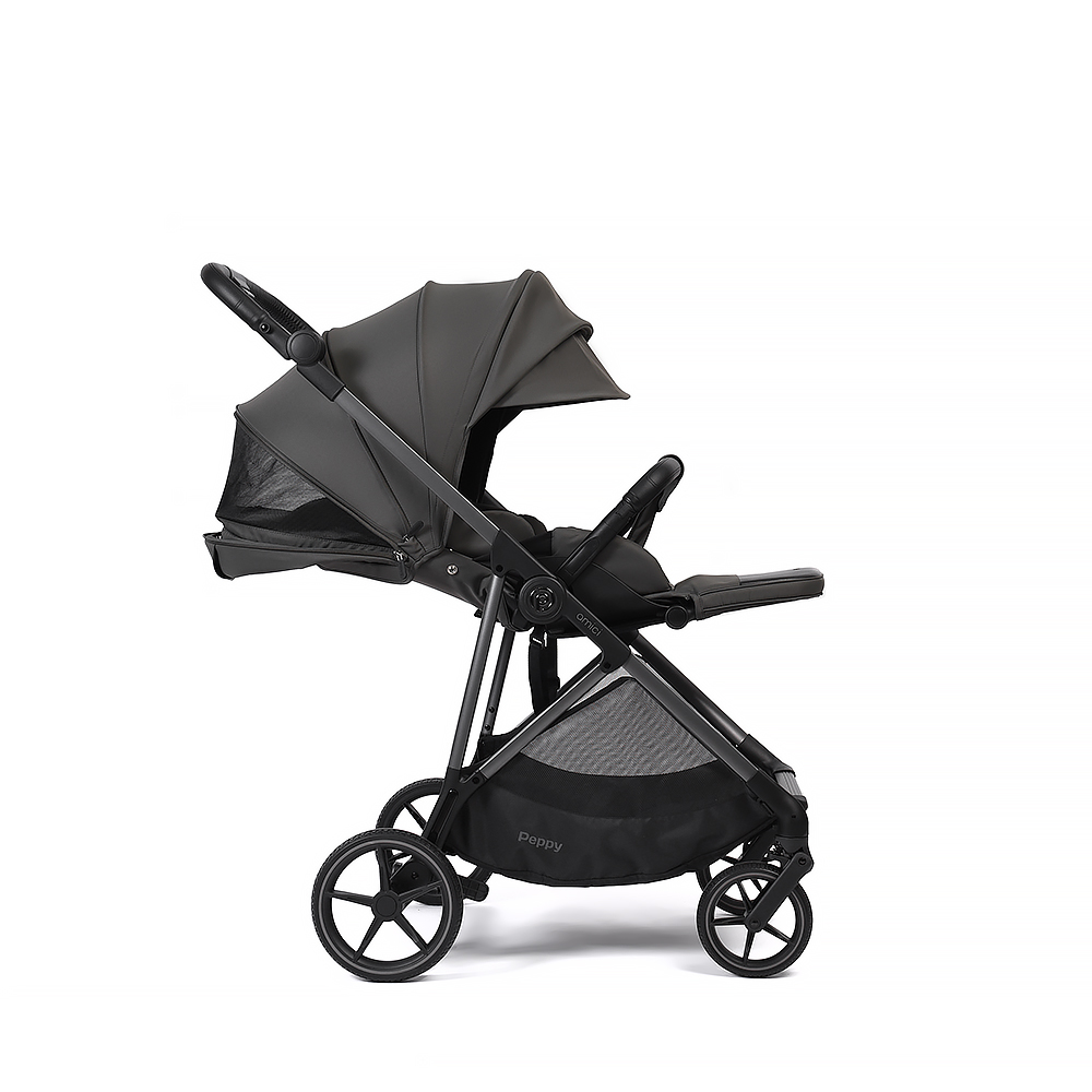 Прогулочная коляска Peppy Amici - легкая и маневренная модель с реверсивным блоком. Блок сиденья можно установить лицом к маме, чтобы малыш чувствовал себя комфортно и безопасно, либо лицом вперед для наблюдения за окружающим миром!