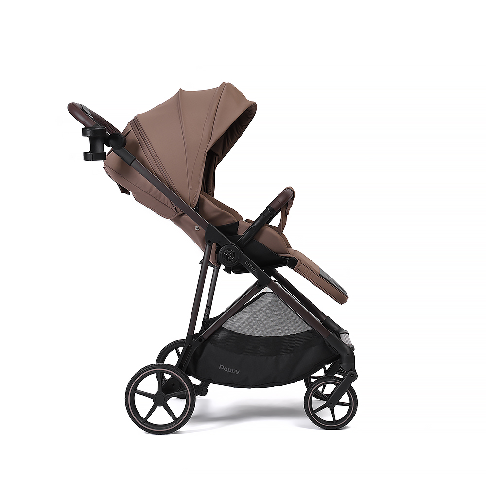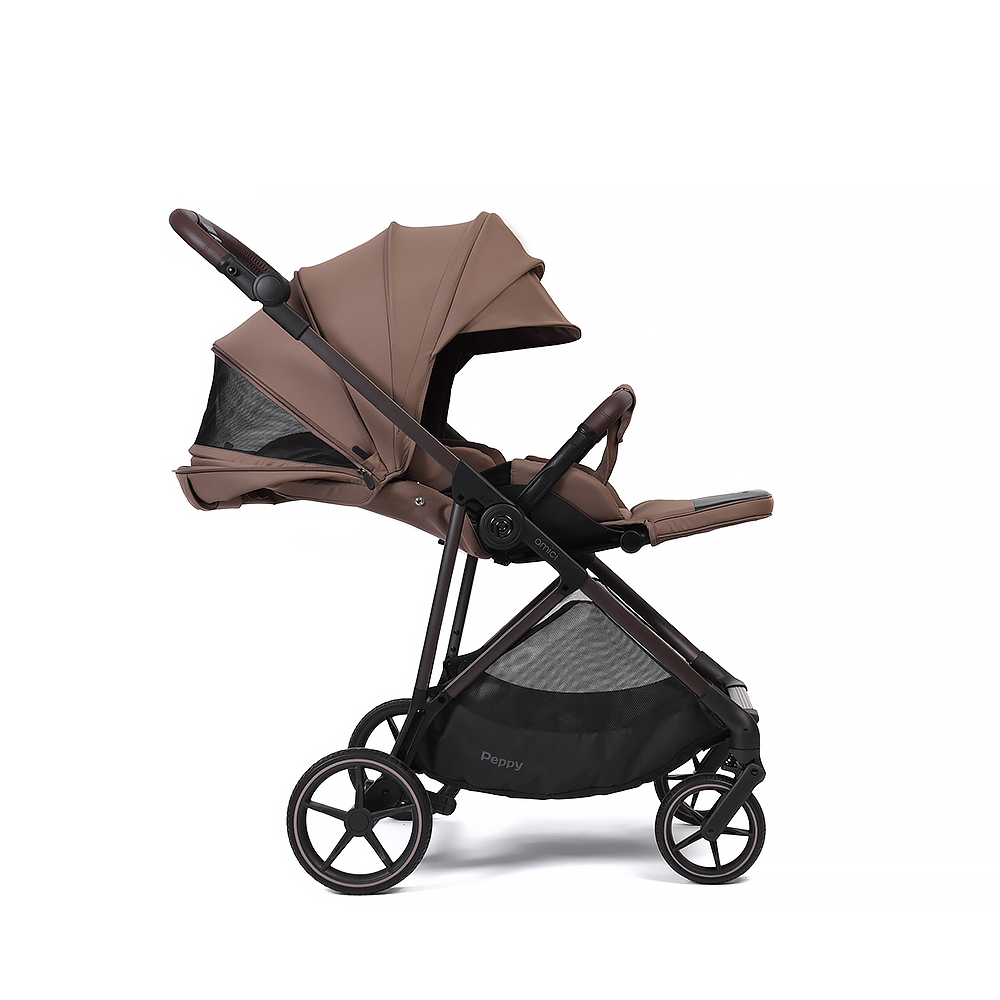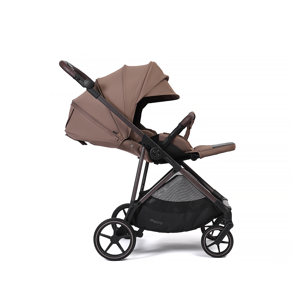 Прогулочная коляска Peppy Amici - легкая и маневренная модель с реверсивным блоком. Блок сиденья можно установить лицом к маме, чтобы малыш чувствовал себя комфортно и безопасно, либо лицом вперед для наблюдения за окружающим миром!