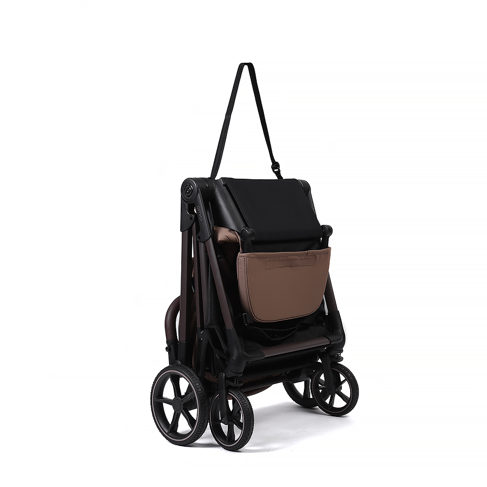 Коляска оборудована удобным механизмом складывания, мягкой амортизацией и глубоким капюшоном. Подходит для использования в любое время года.