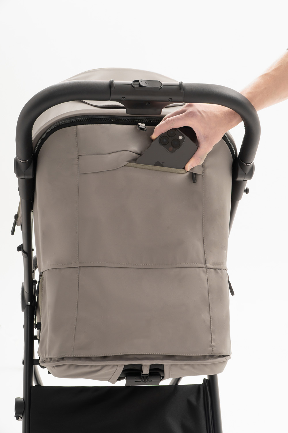 В жаркую погоду задняя секция капора поднимается для проветривания. Москитная сетка (в комплекте) при необходимости всегда под рукой – в специальном кармашке под подножкой.
