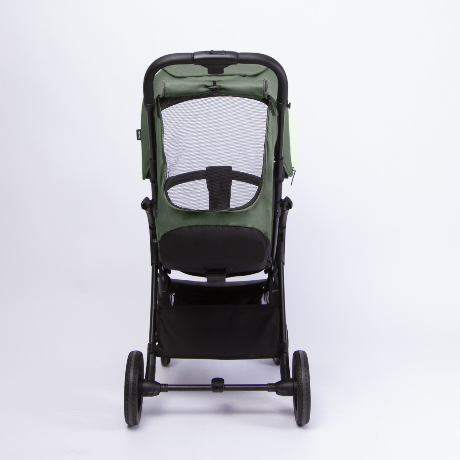 Коляска очень легкая и маневренная (вес 7,9 кг), с большими колесами и активной амортизацией на всех колесах, благодаря чему уверено проезжает по неровностям и гасит вибрацию от движения. При этом модель компактно складывается для перевозки и хранения. Механизм складывания «книжкой» тканью внутрь.