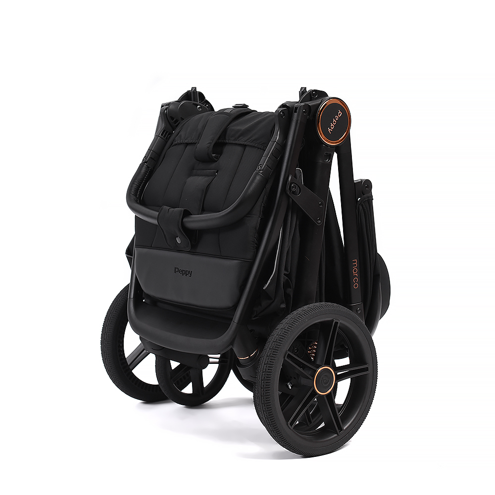 Peppy Marco – всесезонная коляска идеально подходит для прогулок в любое время года! Коляска хорошо защищает малыша от непогоды и сильного ветра, благодаря глубокому капюшону и теплой накидки на ножки, которая не оставляет щелей.