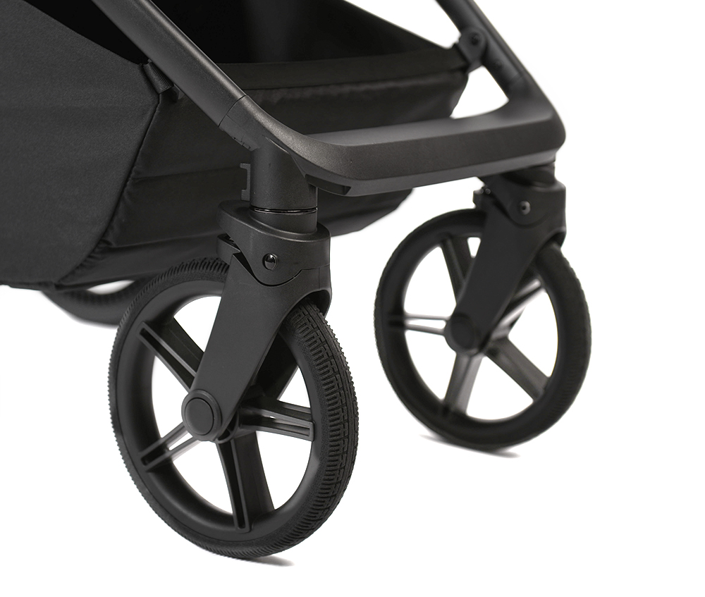 • Система амортизации передних колес снижает эффект тряски при езде по неровным дорогам, и позволяет мягко преодолевать бордюры. На задней оси стоят мягкие пружины, спрятаны в пластиковый каркас от попадания пыли и грязи.