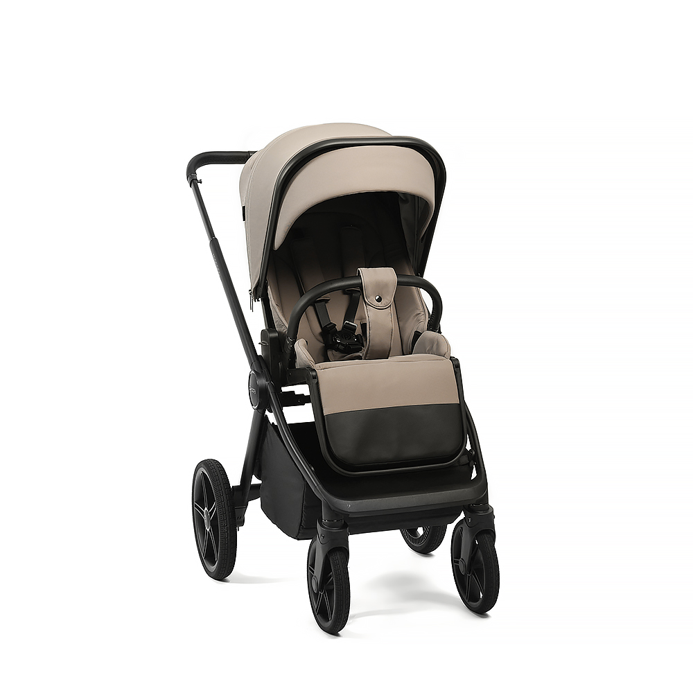 • Бампер из экокожи с вращающимся суставом - можно отстегнуть только одну сторону для удобной посадки малыша в коляску