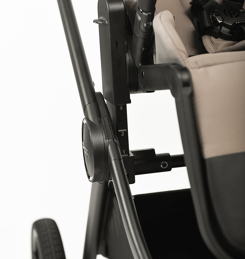 • Спинку прогулочного блока можно зафиксировать в нескольких положениях от положения сидя до лежа (3 уровня регулировки)