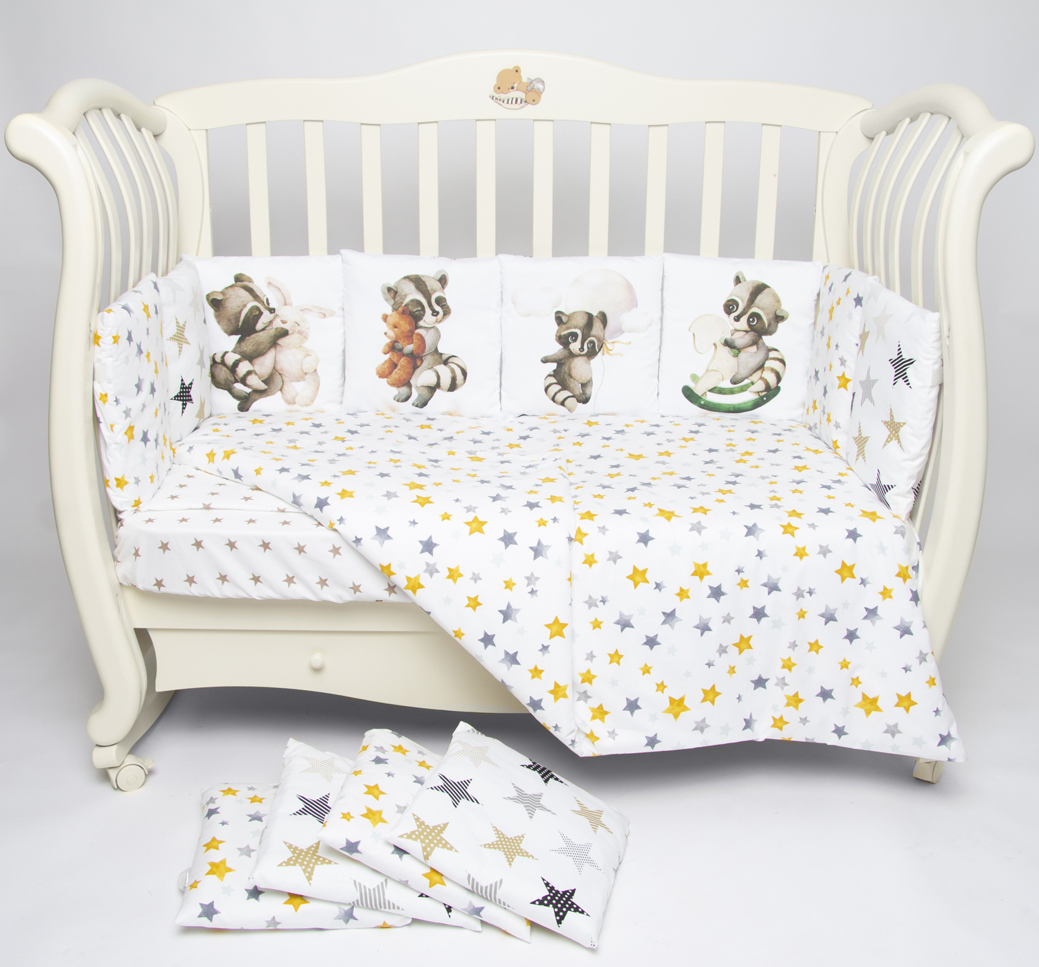 Данный комплект подходит для любых детских кроваток: круглой, овальной, прямоугольной (120х60 см)