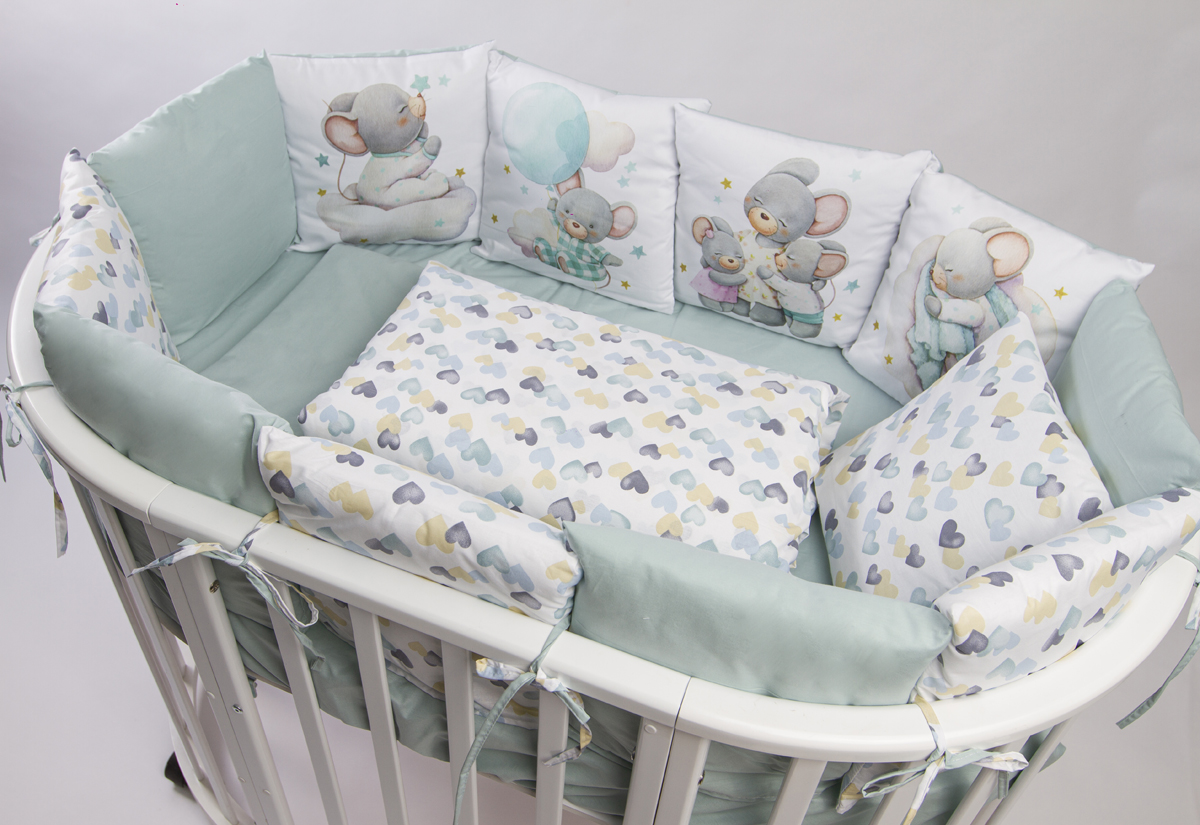Данный комплект подходит для любых детских кроваток: круглой, овальной, прямоугольной (120х60 см)
