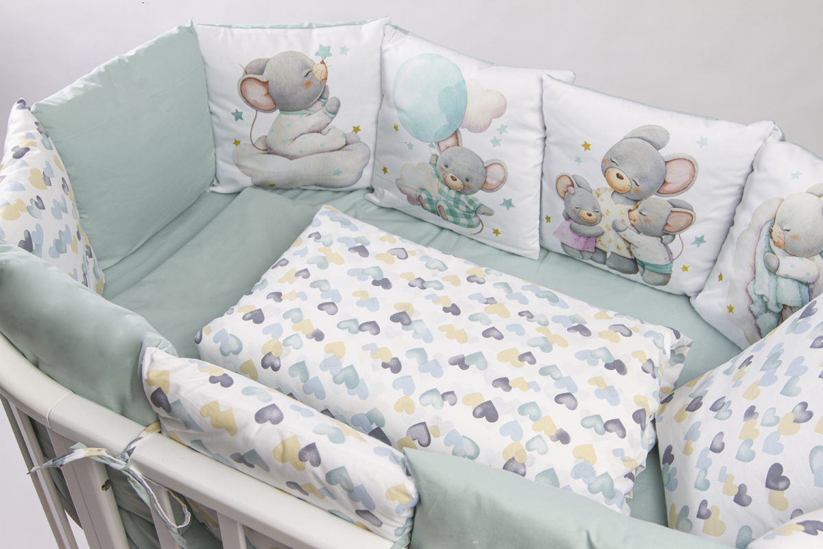 Комплект 17 предметов "Малыш мышонок" мята сатин