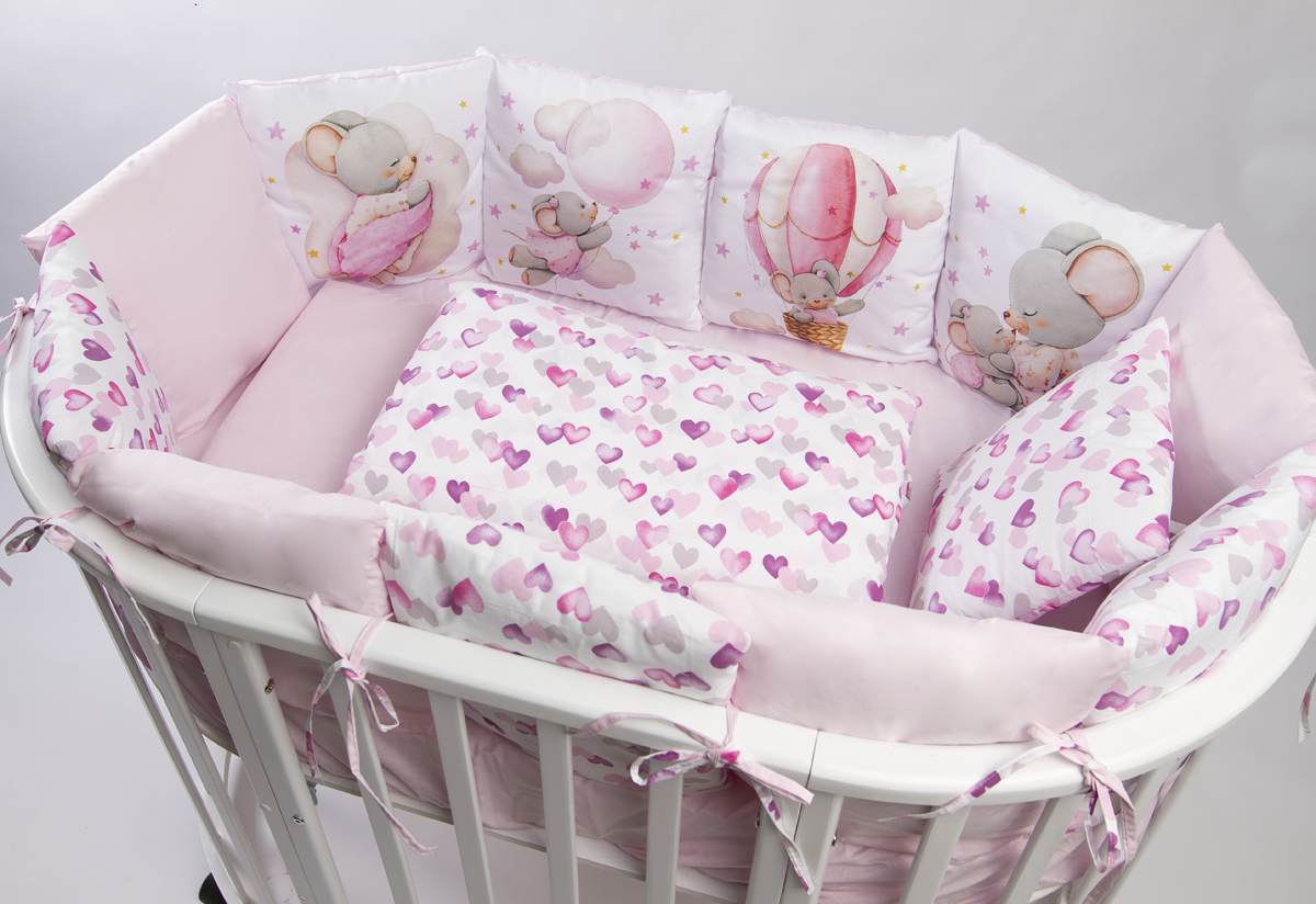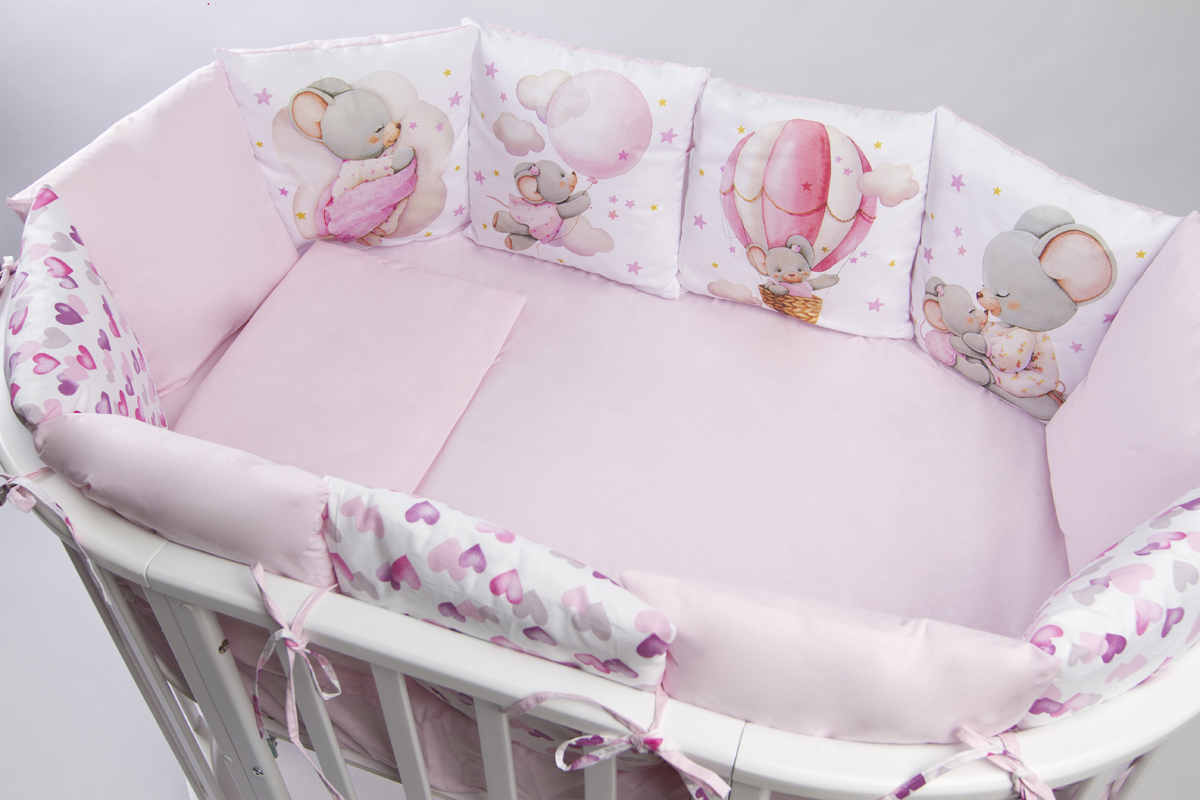 Данный комплект подходит для любых детских кроваток: круглой, овальной, прямоугольной (120х60 см)