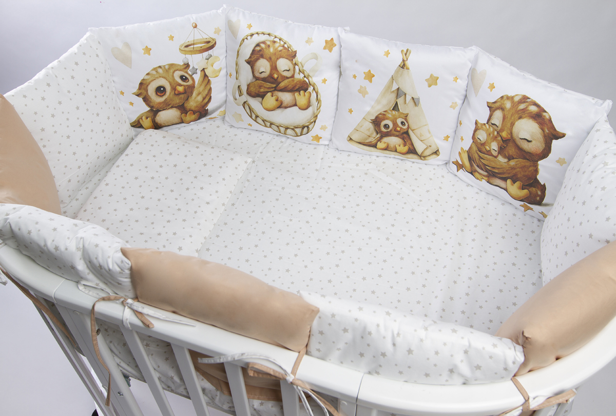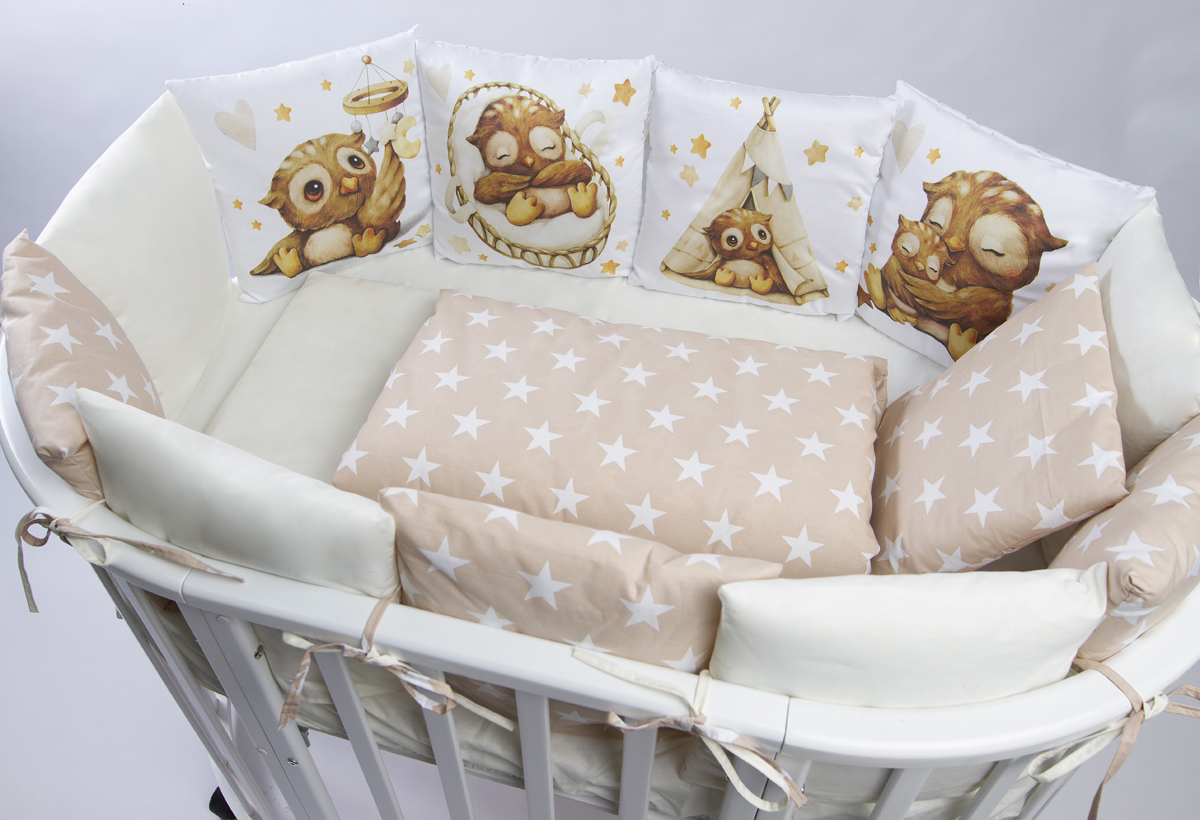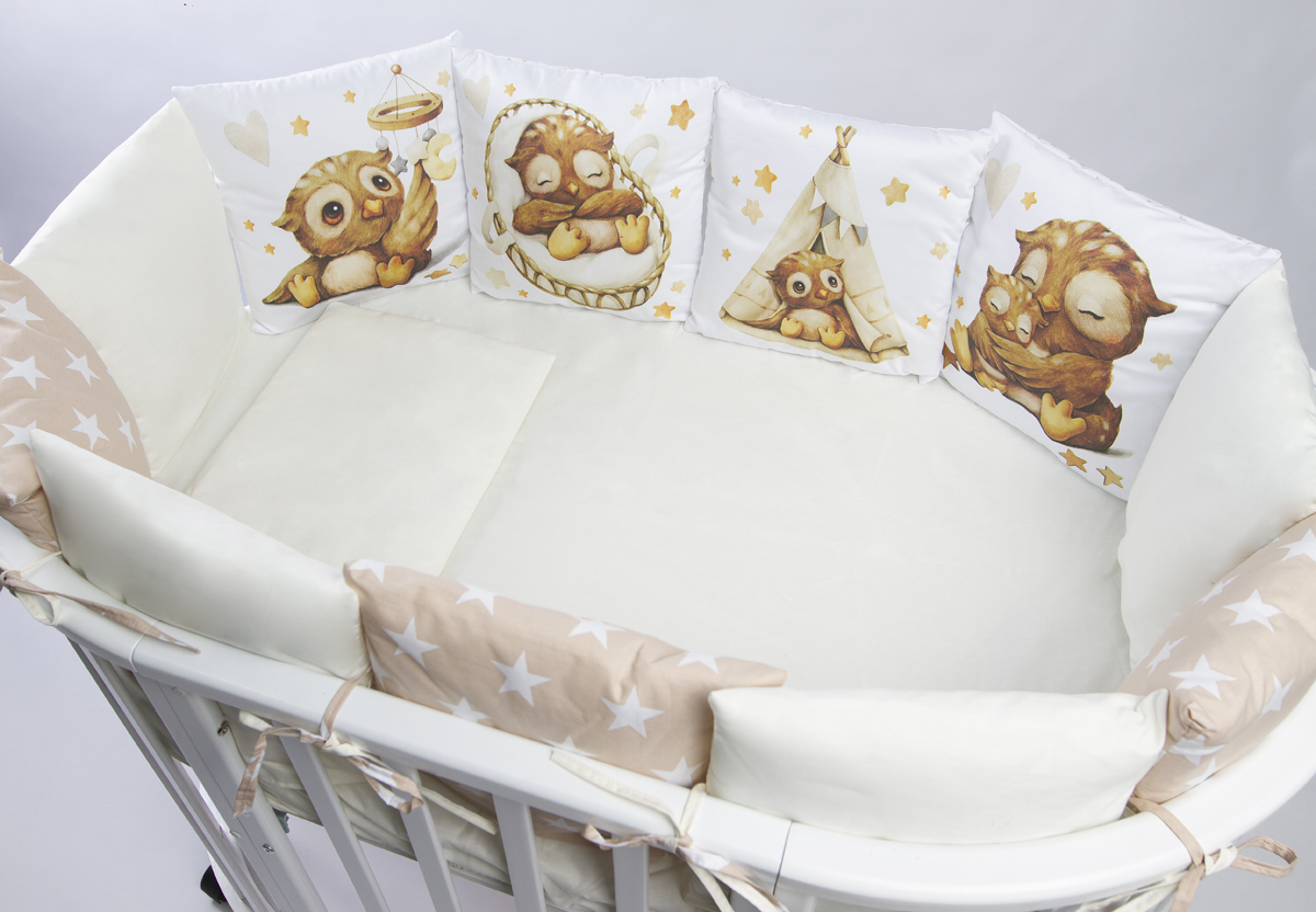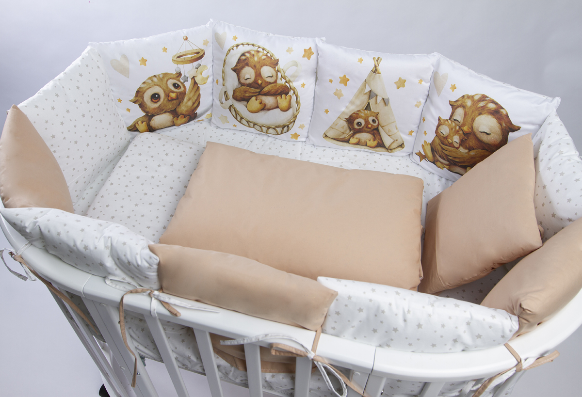 Данный комплект подходит для любых детских кроваток: круглой, овальной, прямоугольной (120х60 см)