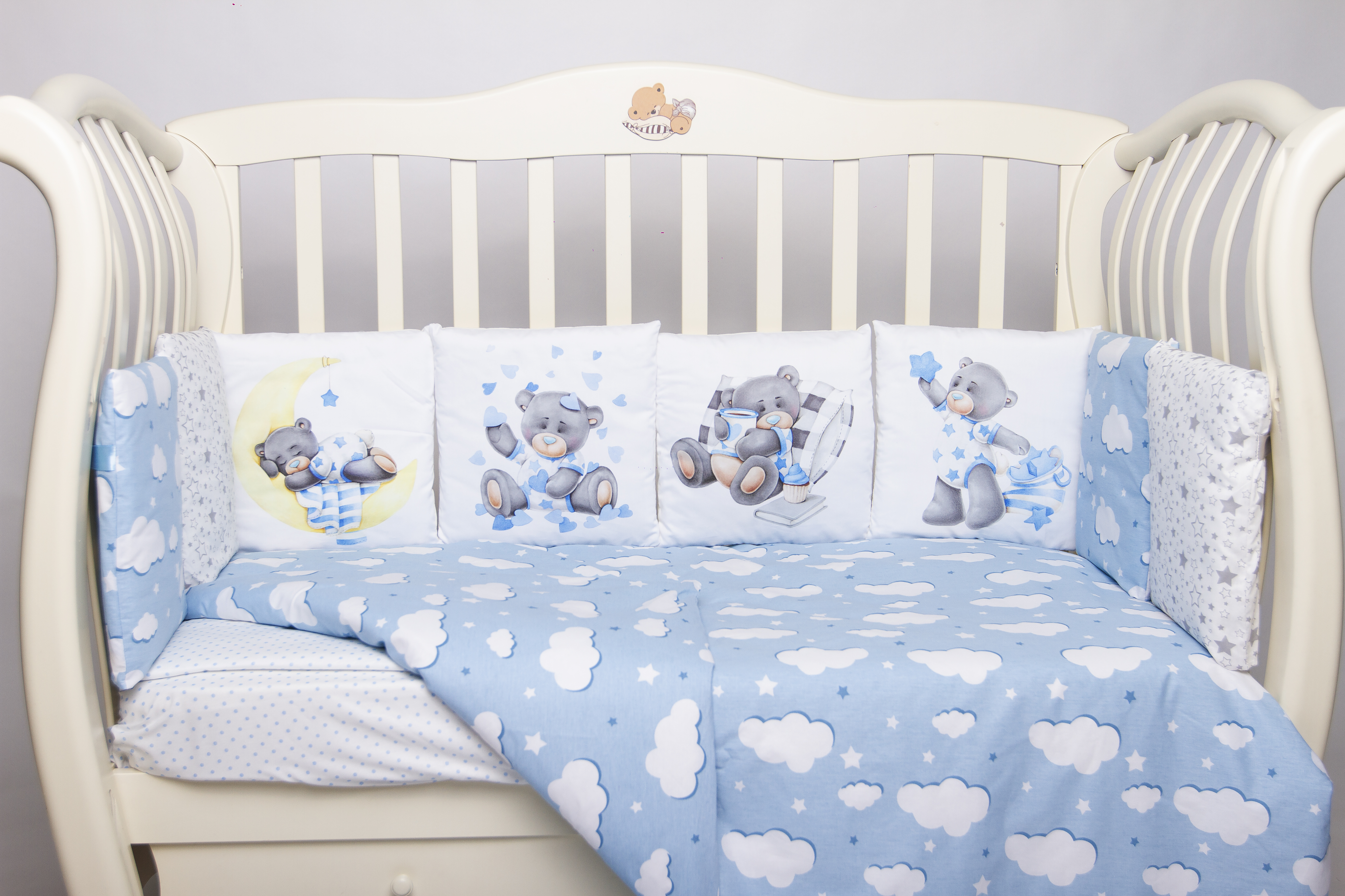 Данный комплект подходит для любых детских кроваток: круглой, овальной, прямоугольной (120х60 см)