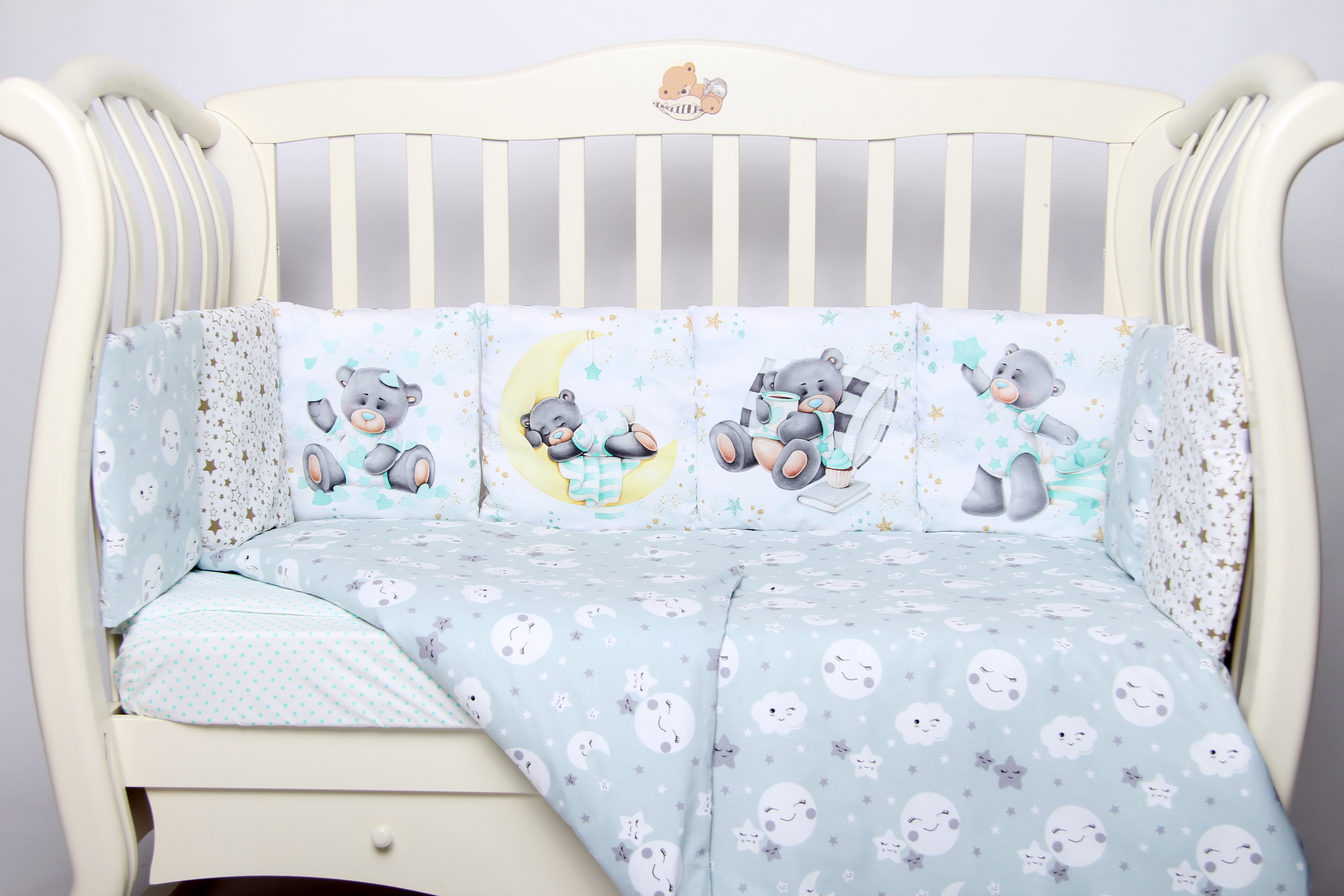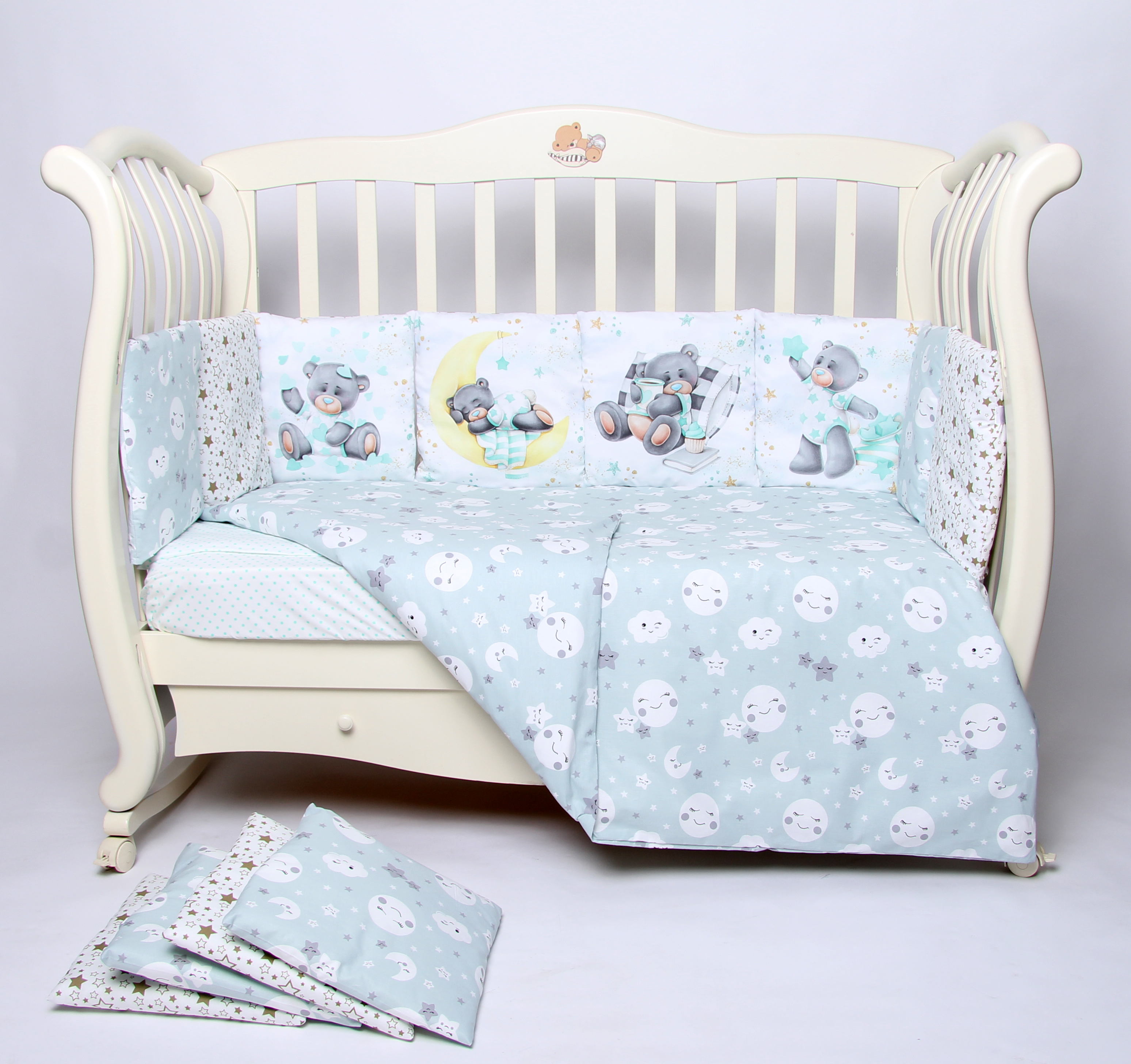 Комплект 17 предметов "Мишка на луне" мята сатин
