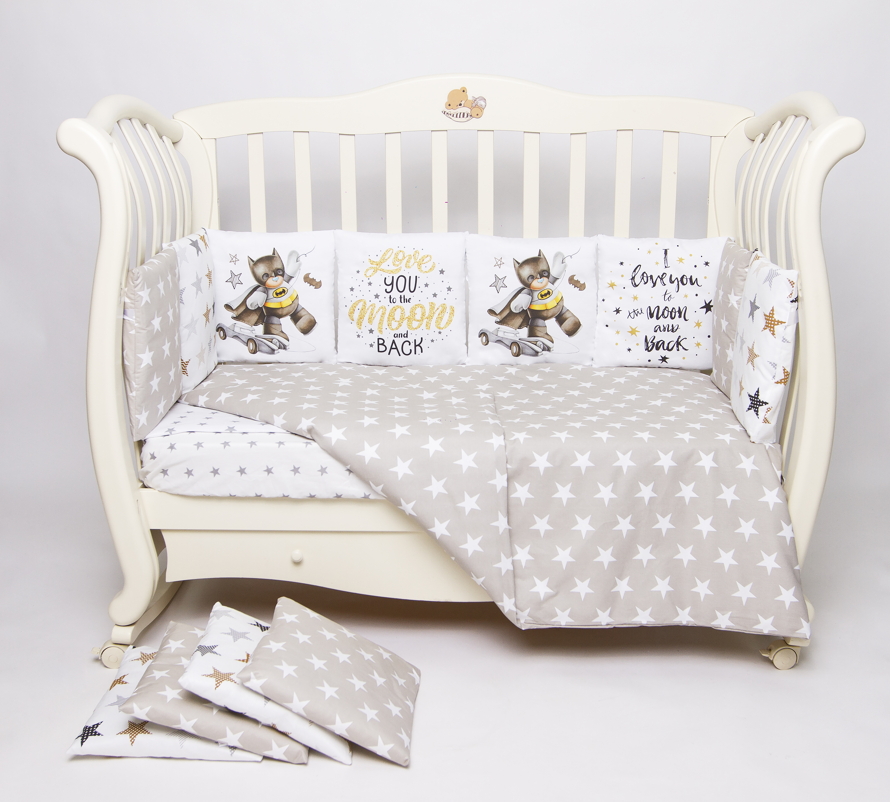 Данный комплект подходит для любых детских кроваток: круглой, овальной, прямоугольной (120х60 см)