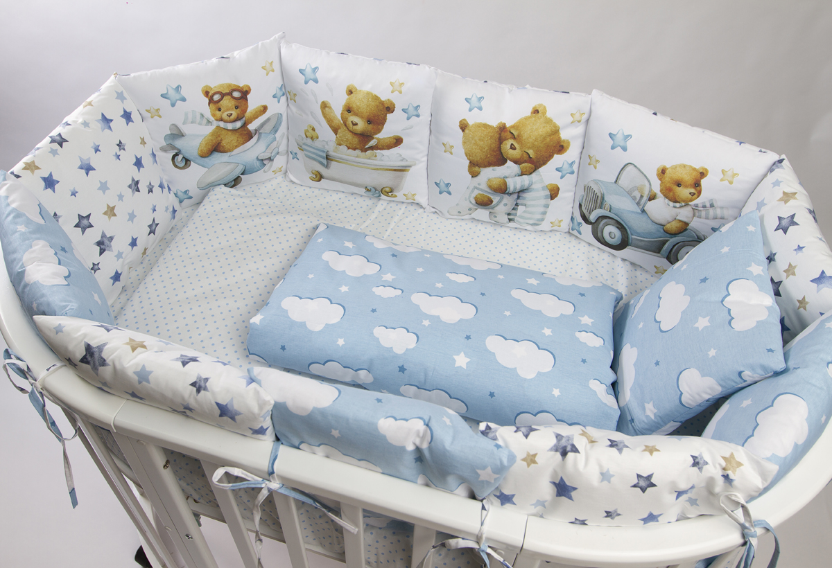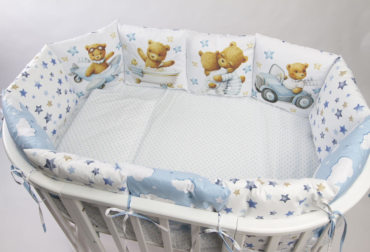 Данный комплект подходит для любых детских кроваток: круглой, овальной, прямоугольной (120х60 см)