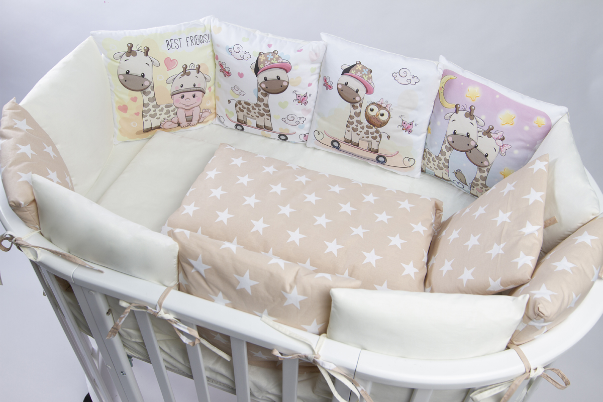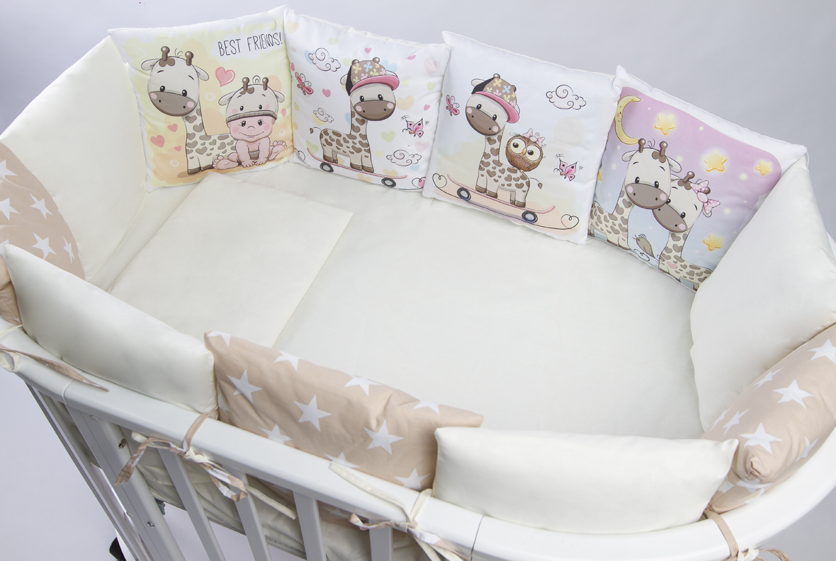 Данный комплект подходит для любых детских кроваток: круглой, овальной, прямоугольной (120х60 см)