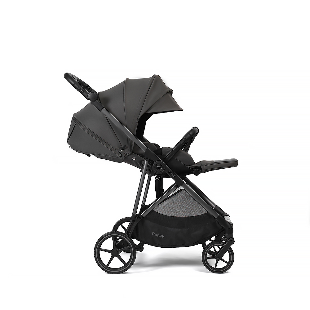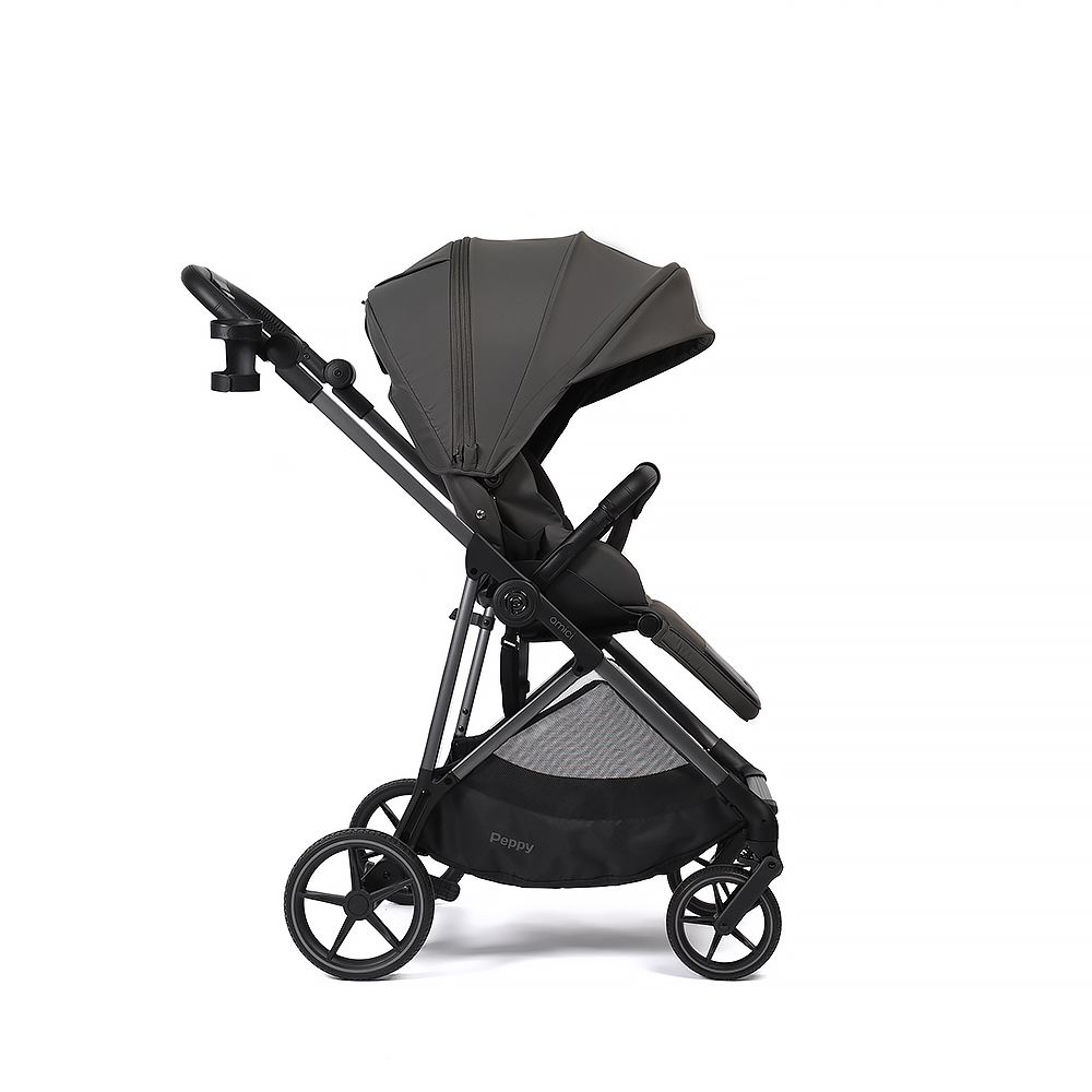 Прогулочная коляска Peppy Amici - легкая и маневренная модель с реверсивным блоком. Блок сиденья можно установить лицом к маме, чтобы малыш чувствовал себя комфортно и безопасно, либо лицом вперед для наблюдения за окружающим миром!
