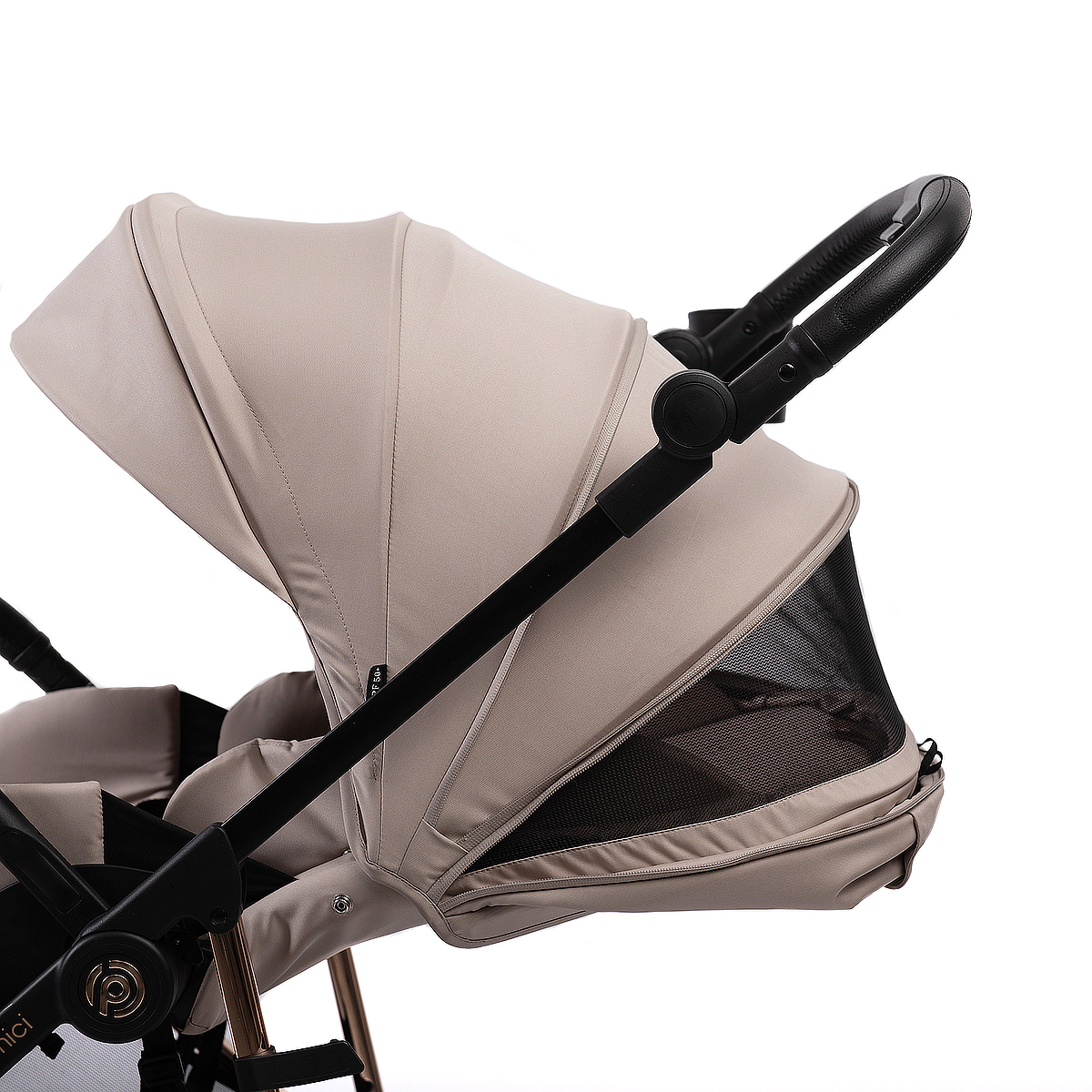 Прогулочная коляска Peppy Amici - легкая и маневренная модель с реверсивным блоком. Блок сиденья можно установить лицом к маме, чтобы малыш чувствовал себя комфортно и безопасно, либо лицом вперед для наблюдения за окружающим миром!