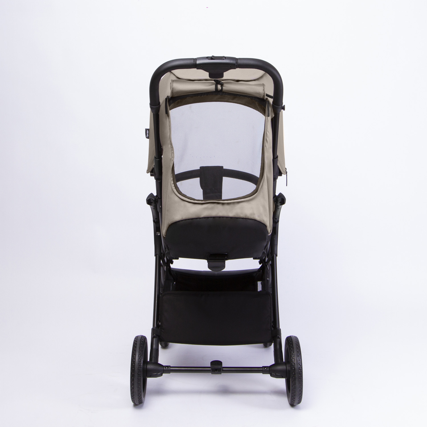 Коляска очень легкая и маневренная (вес 7,9 кг), с большими колесами и активной амортизацией на всех колесах, благодаря чему уверено проезжает по неровностям и гасит вибрацию от движения. При этом модель компактно складывается для перевозки и хранения. Механизм складывания «книжкой» тканью внутрь.