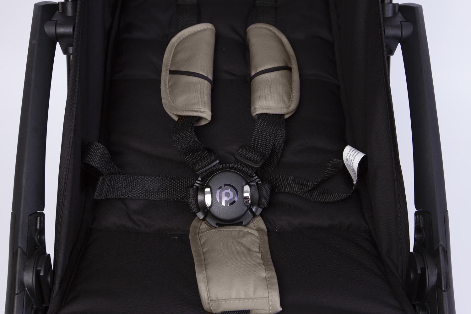 Регулируемые 5-ти точечные ремни безопасности с мягкими накладками, перемычка между ножек с креплением к бамперу;