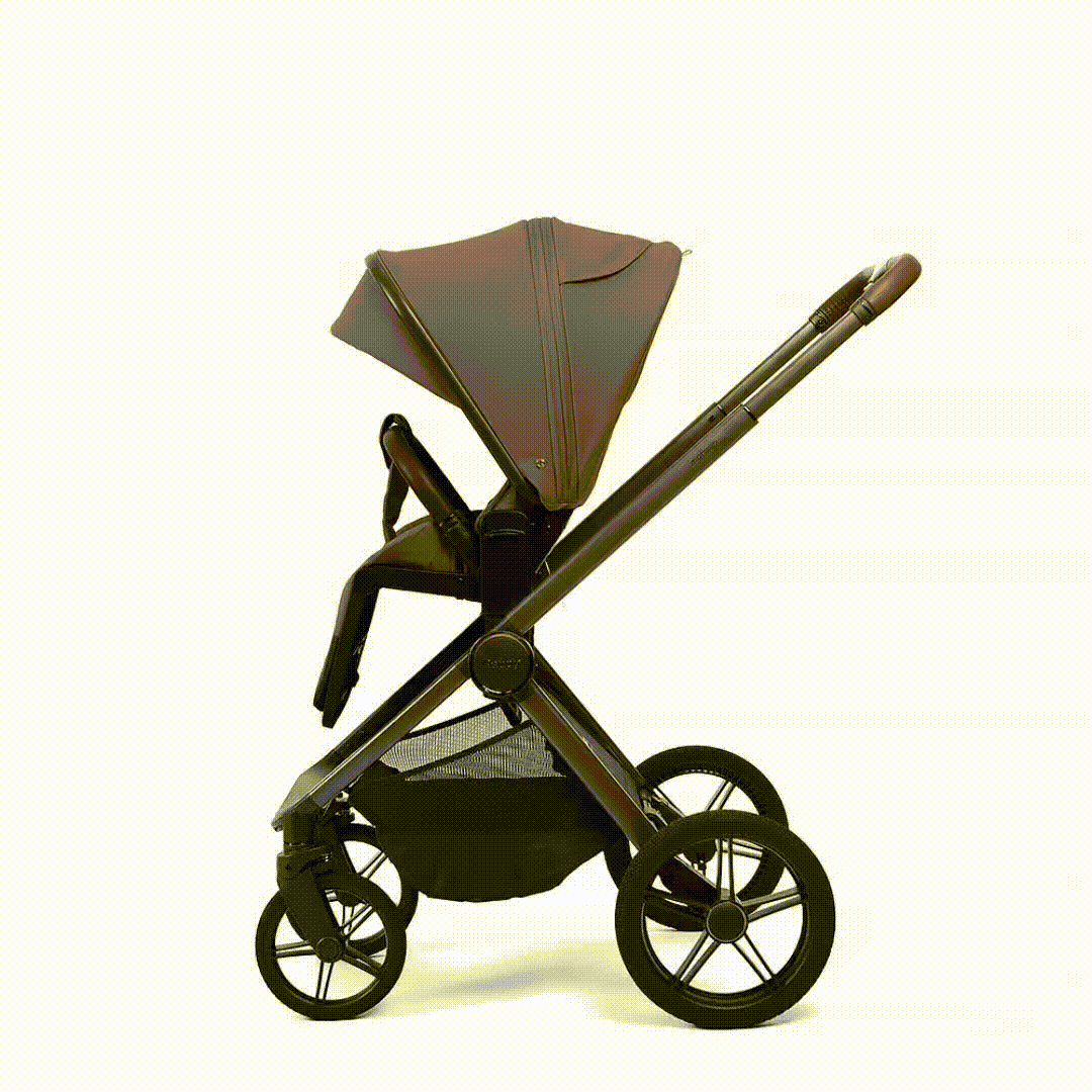 • Установить прогулочный блок на шасси также легко, как и люльку по и против хода движения. Блок регулируется также по высоте, как и люлька в трех положениях.